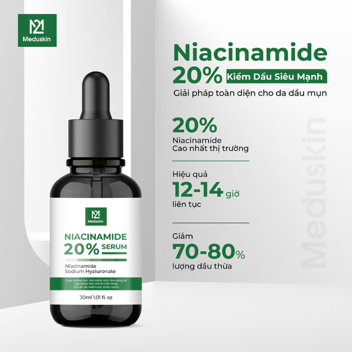Da dầu mụn thường khiến bạn mất tự tin vì lỗ chân lông to, bít tắc và bóng nhờn suốt cả ngày? Đừng lo, Serum Niacinamide 20% Meduskin chính là giải pháp toàn diện, giúp kiểm soát dầu thừa, thu nhỏ lỗ chân lông, ngừa mụn và phục hồi da hiệu quả.