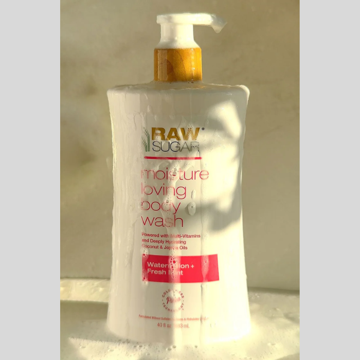 - Sữa tắm dưỡng ẩm hương Dưa Hấu và Bạc Hà Raw Suger Moisture Loving Body Wash giúp làm sạch sâu, nuôi dưỡng và phục hồi làn da với khả năng tăng cường độ ẩm.