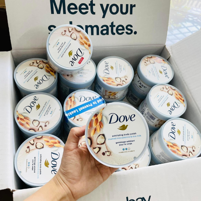 Kem tẩy da chết body Dove nhẹ nhàng loại bỏ lớp da chết trên bề mặt da kết hợp với hợp chất dưỡng ẩm Nutrium Moisture phục hồi chất dinh dưỡng tự nhiên của da, mất đi trong quá trình tắm, cho bạn làn da mềm mại và mịn màng hơn chỉ sau một lần tắm. Sản