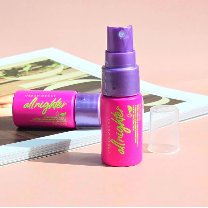 - Với tính năng kiểm soát nhiệt độ được cấp bằng sáng chế, Urban Decay All Nighter Setting Spray thực sự làm giảm nhiệt độ trang điểm của bạn để giữ phấn nền, phấn mắt, phấn má hồng và kem che khuyết điểm tại chỗ ngay cả trong điều kiện nóng, ẩm, lạnh hoặc gió.