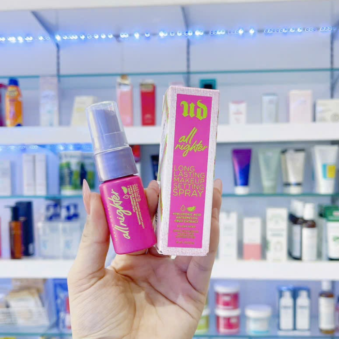 - Xịt Khóa Nền Make Up Urban Decay All Nighter Long Lasting Make Up Setting Spray thích hợp với những cô nàng thường xuyên gặp phải tình trạng lớp nền bị cakey nhờ công dụng cung cấp độ ẩm cần thiết cho lớp nền, giải quyết ngay tức thời những vùng da bị khô mốc, nhanh chóng mang lại làn da mịn màng và căng mướt.